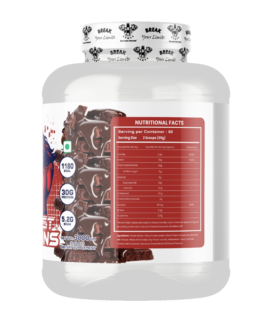Health Core Nutrition Beast Gains is an advanced and effective weight gain supplement. It helps in the synthesis of new muscle gains and prevent post workout muscle loss. Added digestive enzymes helps in quick digestion of nutrients. Each serving provides 30 grams of protein and 1180 calories.