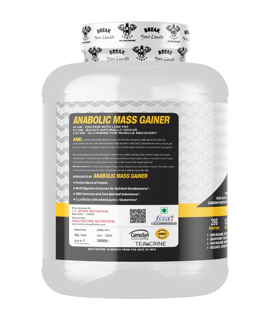 Health Core Nutrition Anabolic Mass is an advanced and effective weight gain supplement. It helps in the synthesis of new muscle gains and prevent post workout muscle loss. Added digestive enzymes helps in quick digestion of nutrients. Each serving provides 28 grams of protein and 1100 calories.