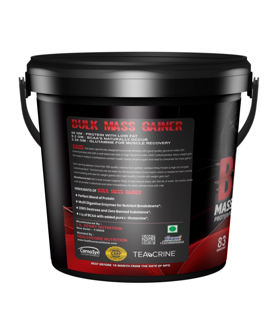 Health Core Nutrition Bulk Mass is an advanced and effective weight gain supplement. It helps in the synthesis of new muscle gains and prevent post workout muscle loss. Added digestive enzymes helps in quick digestion of nutrients. Each serving provides 30 grams of protein and 892 calories.